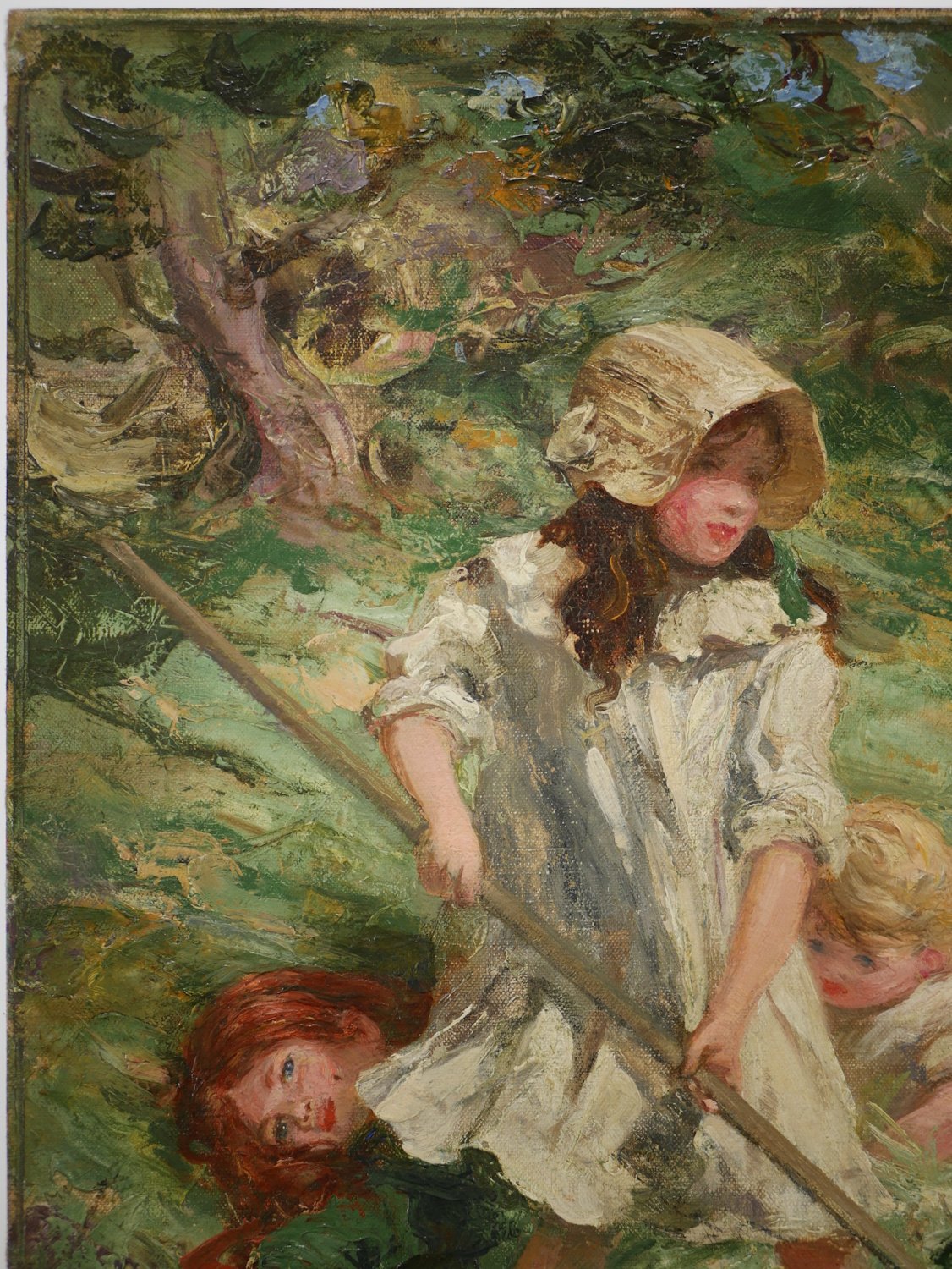 Whether or how much it was due to the influence of those experiences it is impossible to say, but during the last twenty years of his practice portraiture gradually gives place to a delightful series of works in which, sometimes the human figure, sometimes landscape, forms the leading motive, and in which the artist gives free rein to his fancy, both in design and colour. Of these one may mention “ Woodland Gleaners,” now in the Dundee Art Gallery, as “ Fagot Gatherers,” “The Home of the Blue Bird,” and “ Children Haymaking.”