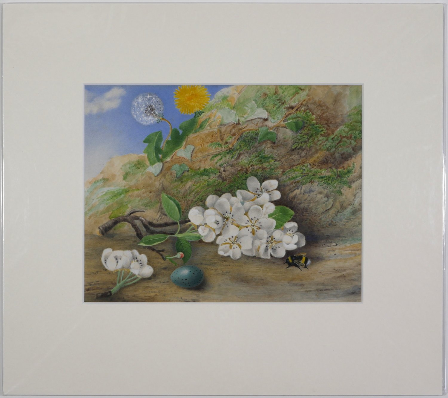 British School (19th Century) – Bee, Apple Blossom and Egg of a Song Thrush