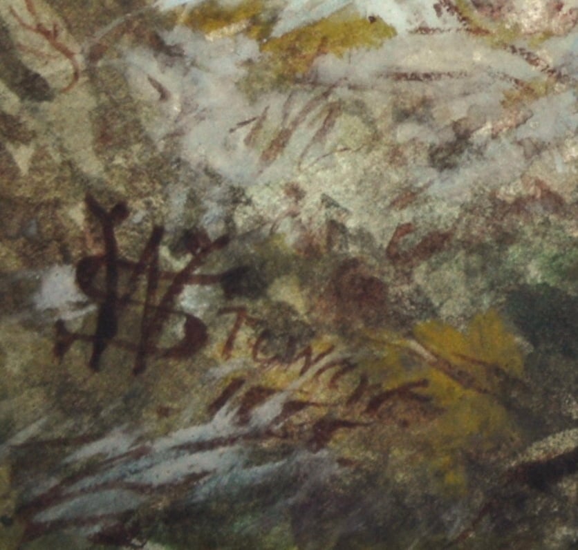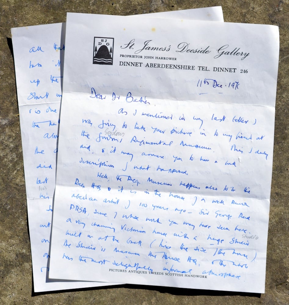 Provenance: St. James’s Deeside Gallery, Dinnet Aberdeenshire. A label and a letter from the Gallery to a previous owner is dated 11 Dec. 1970/71). The letter is difficult to read but is written in reference to the watercolour.